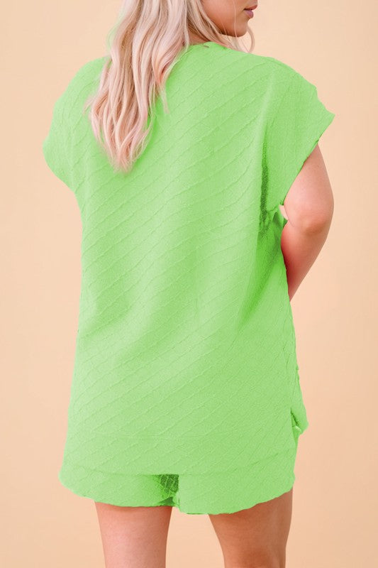 Checkered Textured Tee and Drawstring Shorts