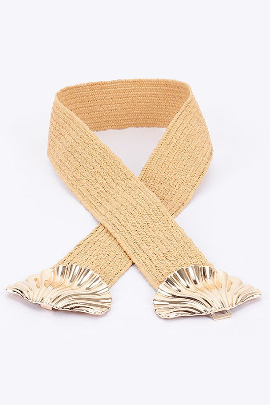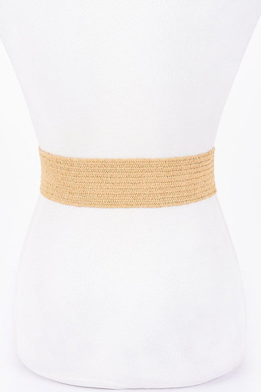 Plus Size Flower Buckle Elastic Faux Straw Belt