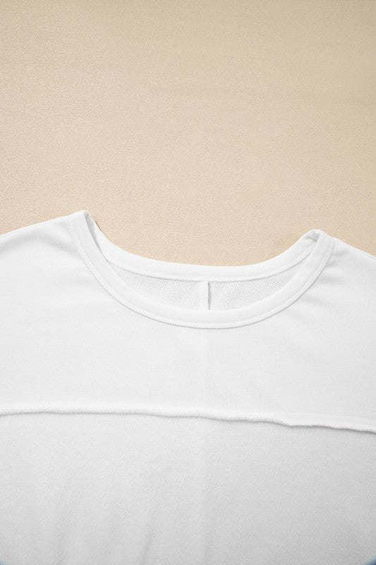 Plus Size Solid Raw Seam Top and Drawstring Pants